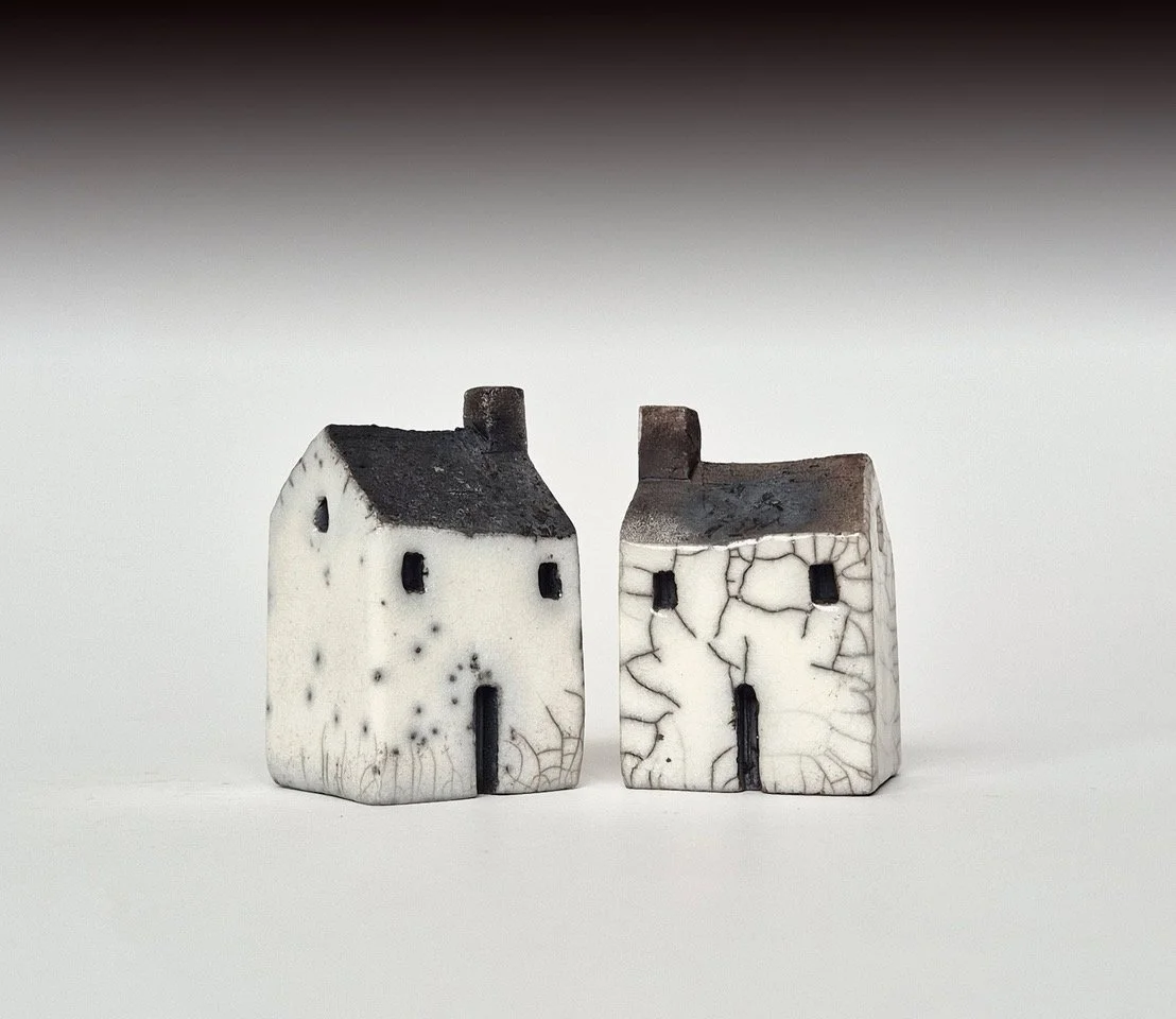 Andy now lives in Cumbria and has carried on this theme to the present day but now combines his two core values, art and nature. He makes ceramic houses inspired by the traditional Japanese Raku technique. A rustic if somewhat precarious technique using all of nature’s elements, earth, air, fire and water.