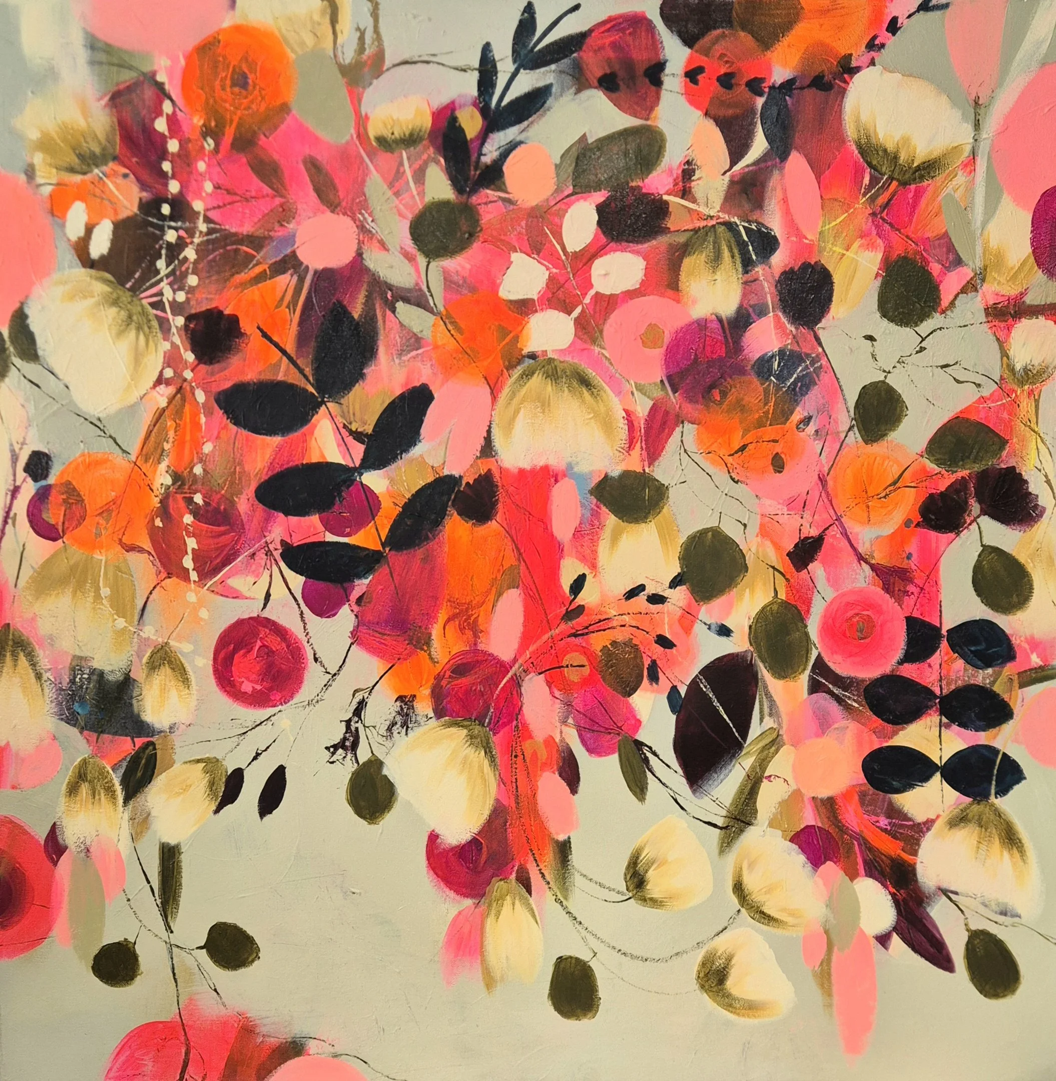 With a degree in textile design Sandy’s paintings are informed by her deep passion for colour. Always seeking to combine her love and appreciation of being in nature with the complexities of life itself. Working with layers of acrylic paint each one a representation of another stage interweaving with each other not disregarding the importance of the initial layers. As she works to push and pull the paint, it’s the glimpses of the early mark making that can reveal the unexpected and help to produce the intrinsic depth that she is looking for.