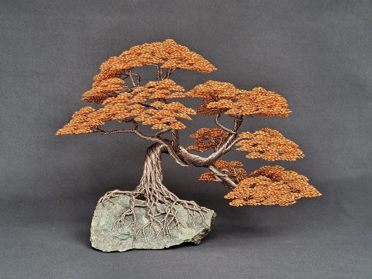Having always enjoyed building and creating various crafts throughout his life, he turned his creative passion into making wire trees.